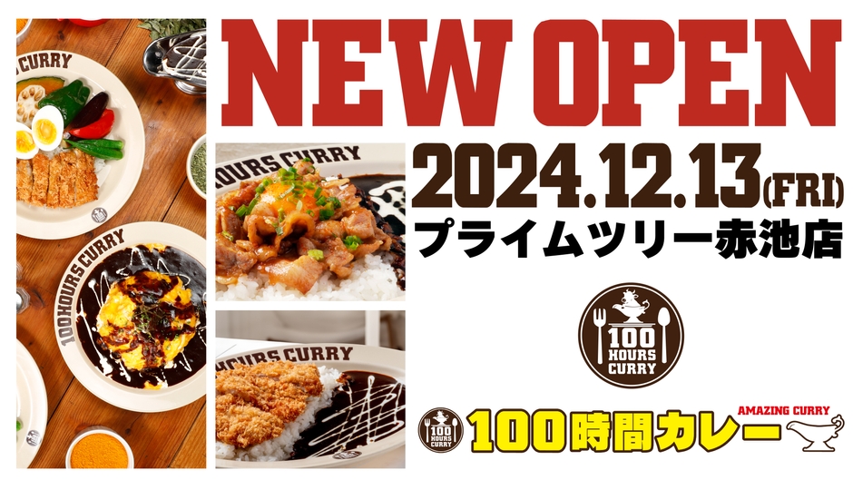全国約50店舗展開しているカレー専門店「100時間カレー」を運営する株式会社アークス(本社:東京都豊島区、代表取締役:米田周平)は2024年12月13日(金)100時間カレープライムツリー赤池店を出店することをお知らせいたします。
