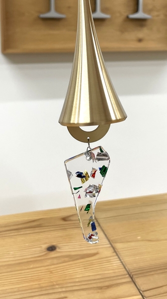 風鈴は内側の舌(ぜつ)が風によって揺れて音を奏でます。今回は舌にTOKYO ACRYLのアクリルの端材を使用いたしました。
