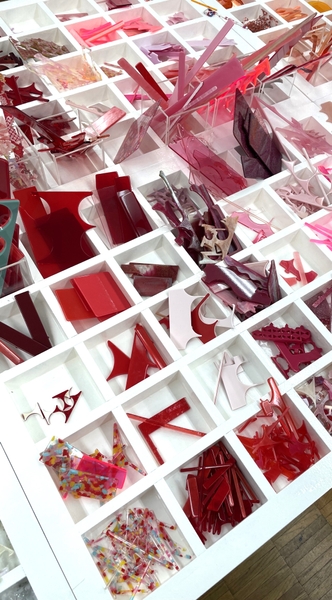 TOKYO ACRYLは長年、アクリル専門で加工をしてきた有限会社三幸(東京都足立区)が作り出すオリジナルのアクリルブランド。取り組みの1つとして加工の過程で廃棄されてしまう端材や顔料・染料などをアップサイクルしたアクリル板を販売されており、様々なカタチとカラフルな色味のおもしろいパーツが流星の輝きのように瞬きます。
