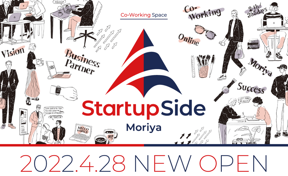 StartupSide Moriyaは、これからの新しい可能性と未来を育む、起業支援型コワーキングスペースです。コンセプトは「一人ではなし得ない成長体験」。