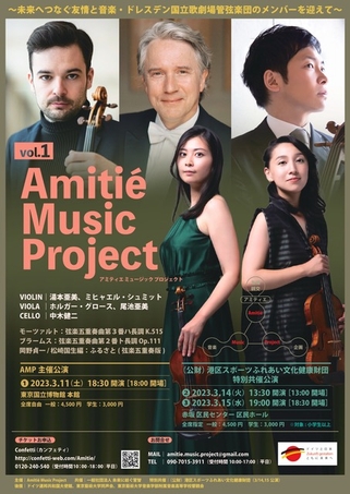 『Amitié Music Project Vol.1〜未来へつなぐ友情と音楽・ドレスデン国立歌劇場管弦楽団のメンバーを迎えて~』が以下の通り開催されます。