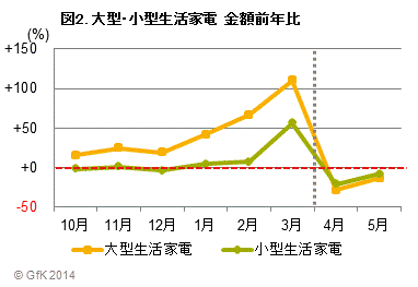 図2:大型・小型生活家電 金額前年比