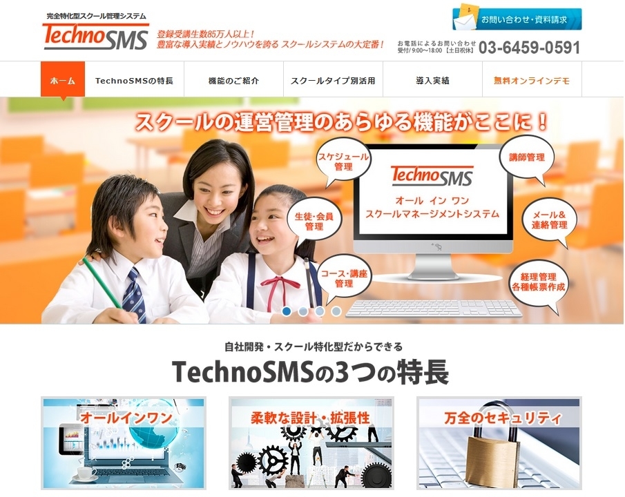 スクール管理システム「TechnoSMS」 ホームページリニューアル・Facebook開設 ~業界唯一・登録なしのデモサイトで体験可能~
