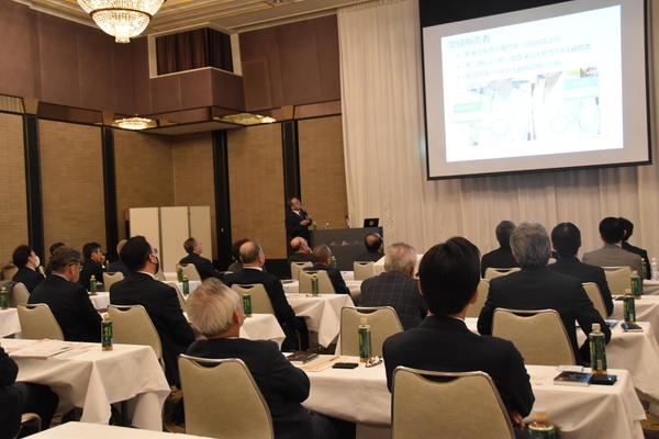 本学を卒業した経営者でつくる「名城社長会」の例会が11月21日、名古屋市中区の名古屋ガーデンパレスで開催され、本学薬学部の間宮隆吉准教授が講演し、特別ゲストとして函館市の大泉潤市長が企業誘致のPRを行いました。
