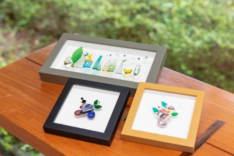 現在は上村の遺志を継ぎ、遺されたGlassCollageをより広く知っていただくために「上村由希ガラス工房」所属の岡本育代が技法、デザインなどを継承し制作しております。