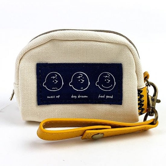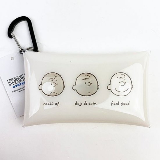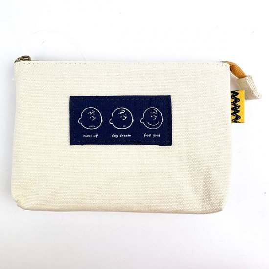 こちらは、フラットな3ポケットポーチです。人気のポケットポーチにも、ついにチャーリーブラウンのデザインがお目見え♡