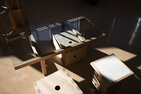 本ブランドの開発過程では、1つのアイディアが常に複数のアイテムへと展開されてきました。例えば、「Glass CMPT Table」は、通常のコーヒーテーブルとしての機能はもちろん、天板下に4台の「Apple Box」がぴったりと収まるように設計されており、コーヒーテーブルとしての用途と収納の機能を両立します。ニューヨークの限られた居住空間を前提とした、スペースを有効に活用できる機能性あふれるデザインを、当社の精緻なモノづくりの技術によって具現化しました。
