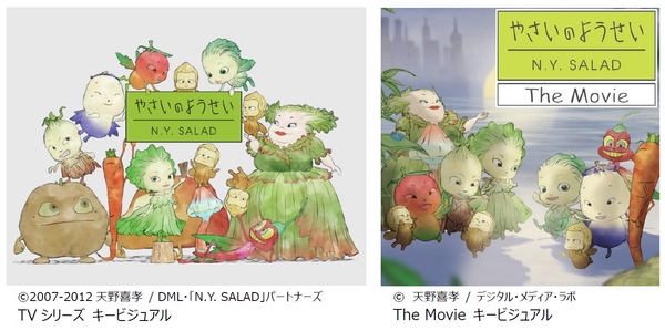 『やさいのようせい N.Y.SALAD』は、天野喜孝氏の画集「N.Y.SALAD」をアニメ化した作品です。 ニューヨークのとあるキッチンを舞台に、個性豊かな野菜の妖精たちが楽しく遊び、そして愛らしく笑う表情が、天野氏独特の鉛筆素描風の描線と淡い色彩によってメルヘンチックに描かれています。 制作にあたっては製作委員会方式が採られ、加賀電子、DMLに加えて、株式会社NHKエデュケーショナル等が参画しました。