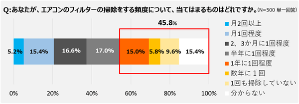 1年以上フィルターを掃除していないご家庭は約半数 電気代の無駄や、嫌なニオイの発生につながる場合も