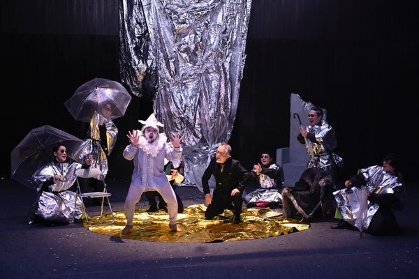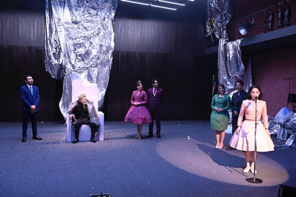 シェイクスピア劇を現代の視点で捉えた演出に定評のある木村龍之介らしい、“まさに今、世界で起こっていること”を想起せずにはいられないプロローグを経て、本編はスタート。リア王の宮殿・大広間に集まった人々が談笑し、場内の空気は先ほどとは打って変わって和やかだ。