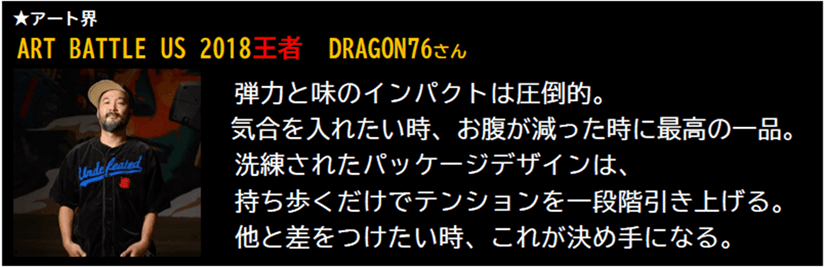 世界を股にかけ活躍するアート界の王者 DRAGON76(ドラゴンナナロク)さんも『タフグミ』をこよなく愛する王者の一人。