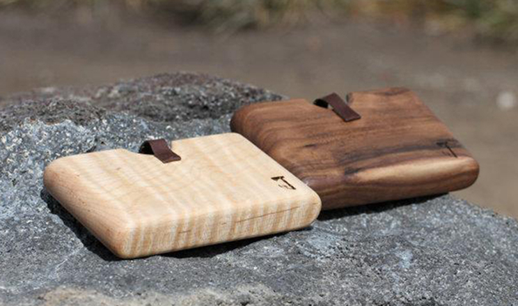 ・一つの木片から削り出し、つなぎ目のない丈夫な造りの木製財布「ウッドウォレット」。
