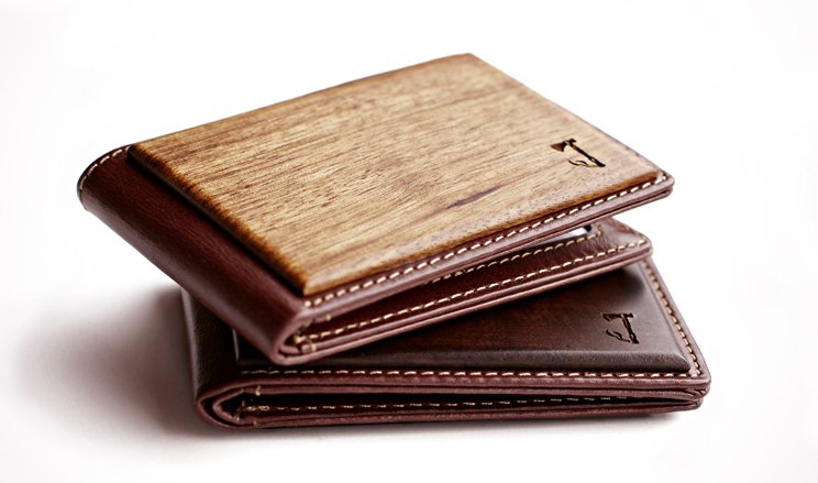 ・木と皮を組合わせたユニークなデザインに職人技を感じる折り財布「バイフォルドウォレット」。