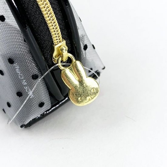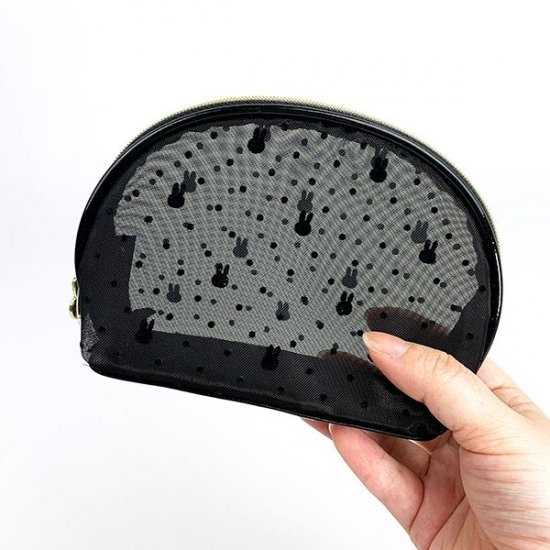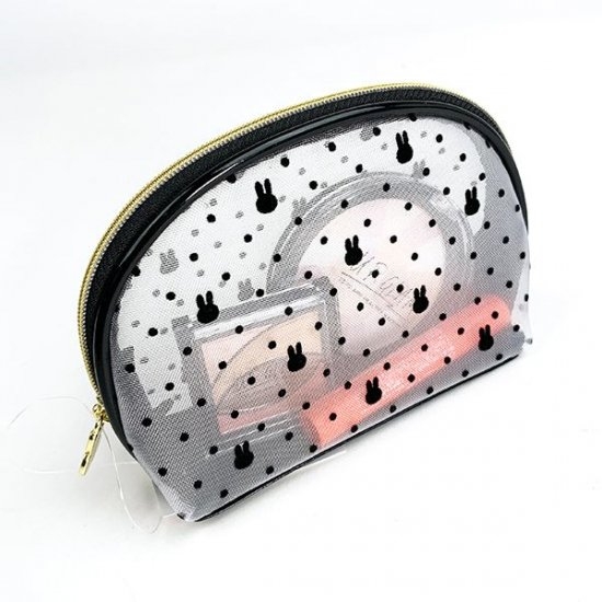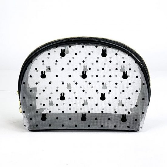 透け感のあるナイロン素材のポーチで、ミッフィーフェイスのシルエットとドットの模様がシンプルシックなんです。