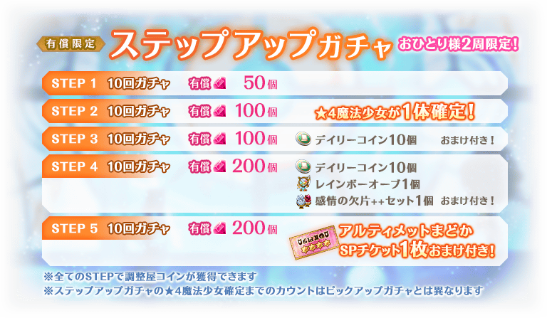 ※STEP2での★4魔法少女について、ピックアップ対象の魔法少女が確定するわけではございません。