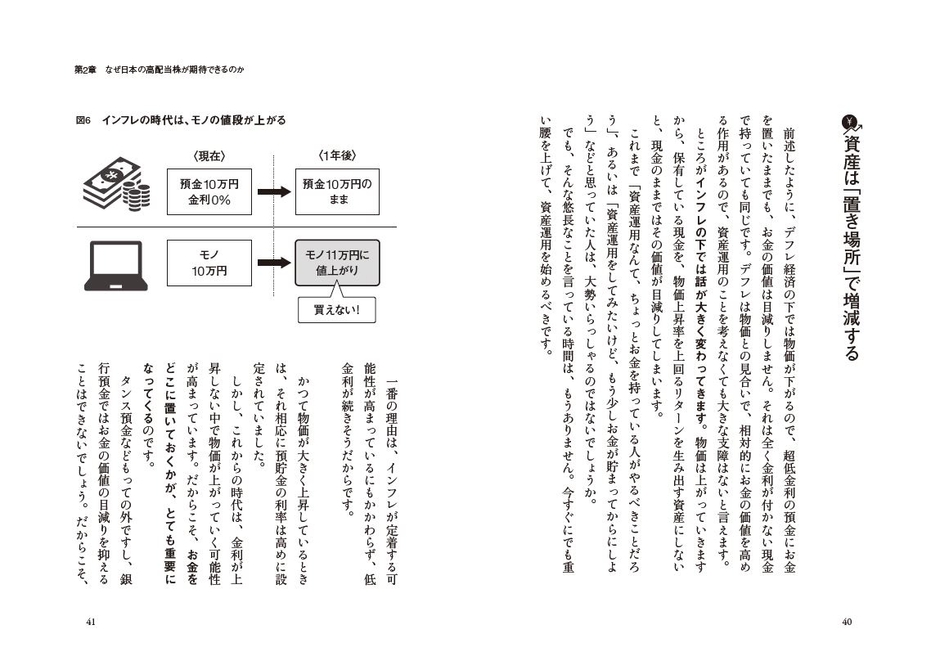 日本が直面している「脱・デフレ」に個人が対応するための一番の方法としての「高配当株」投資の銘柄はもちろん、買い方、考え方も指南します。