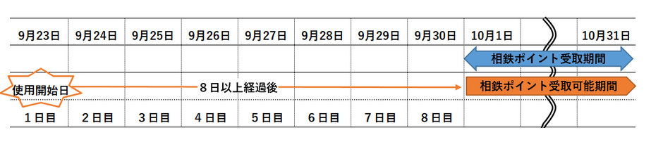 <例>10月14日に使用開始の定期券の場合、10月21日からポイントの受け取りが可能となります。