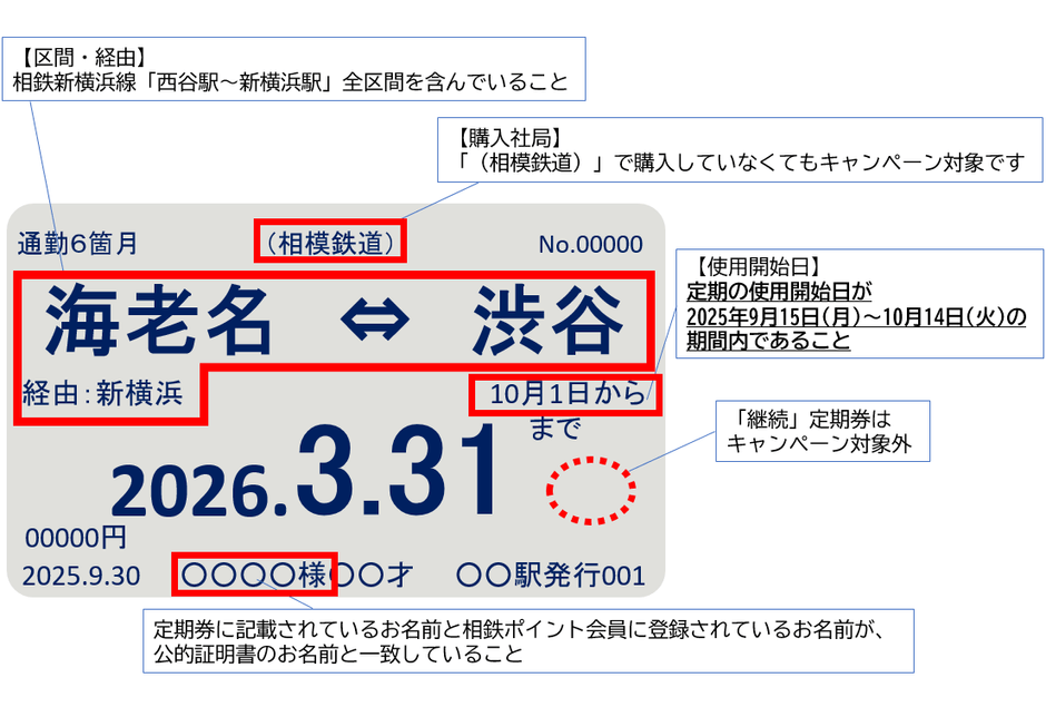 ※「羽沢横浜国大駅」を経由していない定期券の場合は、キャンペーン対象外となります