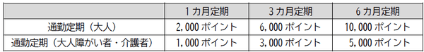 通勤定期券区間に応じて、付与ポイント数を倍増