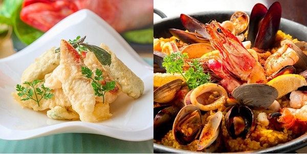 金目鯛の天ぷら/海鮮パエリア