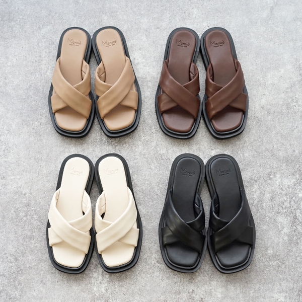 商品名 :menue (メヌエ) スクエアトゥ 厚底 コバサンダル