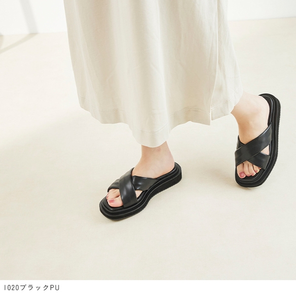 トレンドをぎゅっと詰め込んだクッションサンダル。