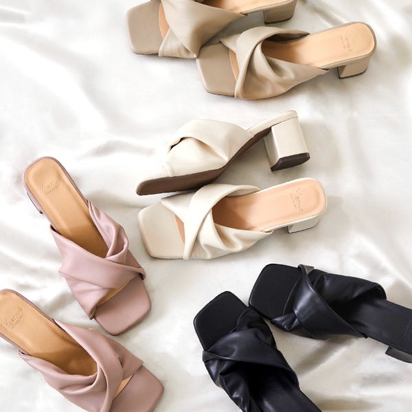 商品名 :menue (メヌエ) スクエアトゥギャザーミュールサンダル