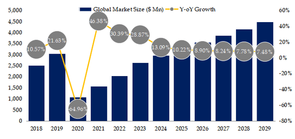 ビザアウトソーシングサービスの世界市場規模(百万米ドル)、2018-2029年