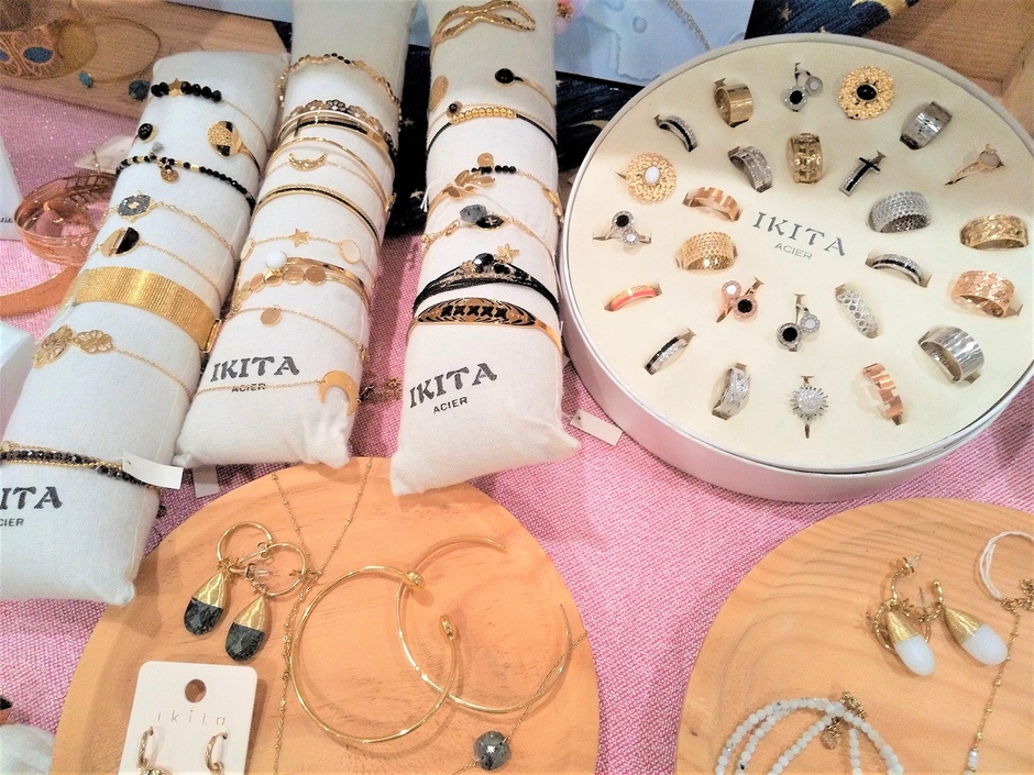 パリのプチプラジュエリー、世界中で一点もののバック&ポーチ、コットンパールアクセサリー、イラスト作家さんなどお馴染みのお店が並びます。