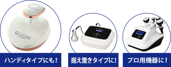 超音波美顔器、キャビテーション機器、プロ用機器。