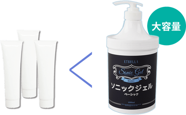 一般的なチューブタイプのジェルに比べて、容量は3本分以上! たっぷり贅沢に使ってもコストはダウン。安心してお使いいただけます。