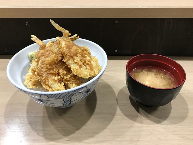 名店から引き継いださっぱりとしたタレは、天ぷら本来の味を引き立てる大人な味わいで、脂っこいものが苦手な人も食べやすくなっています。天丼にはすべて味噌汁がついてくるのもうれしいポイント。カウンターにはセルフでいただけるお新香、濃い味が好みの方用にタレも置いてあります。