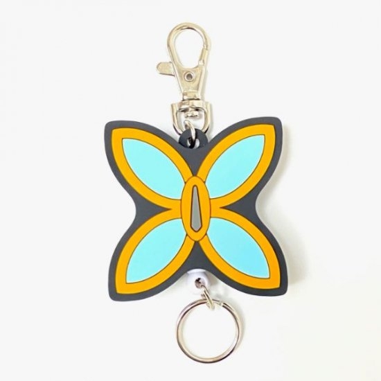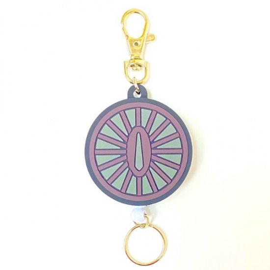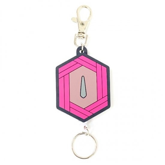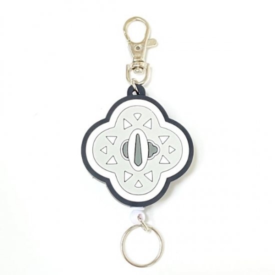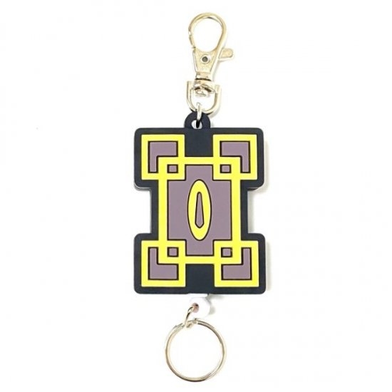 竈門炭治郎の日輪刀の鍔をモチーフにしたデザインで、カラーもデザインもクール♪ラバーモチーフの下部についたリングがリールになっているので、カギなどを取りつけるのに最適です。