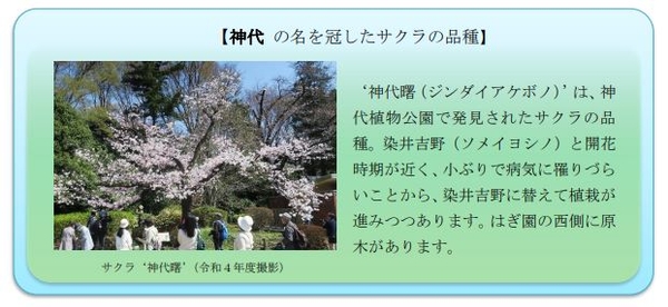 当園では、“さくら園”をはじめ園内各所で、早咲きの大寒桜(おおかんざくら)から遅咲きのサトザクラ類まで、約60種類、750本のサクラをご覧いただけます。園内を彩るサクラの見ごろに合わせて「さくらまつり」を開催します。サクラの最盛期をお楽しみいただくため、通常月曜日は休園日のところ、3月25日(月)は臨時開園いたします。