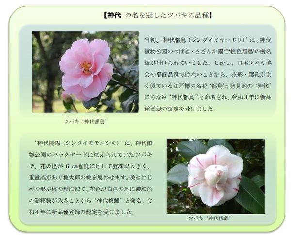 日本ツバキ協会登録新花約100種の紹介やツバキの切花を展示します。