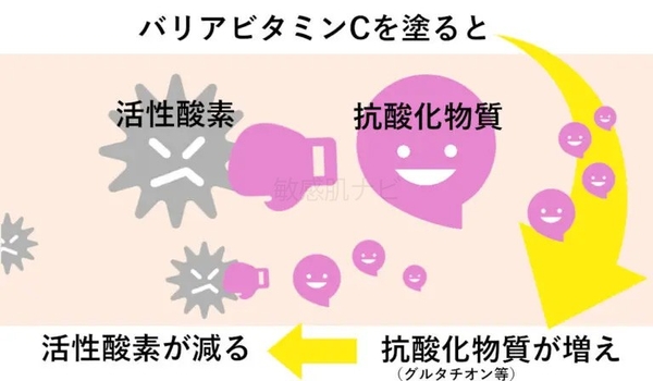 バリアビタミンCは、細胞内抗酸化システムを活性化し、活性酸素を減らします。