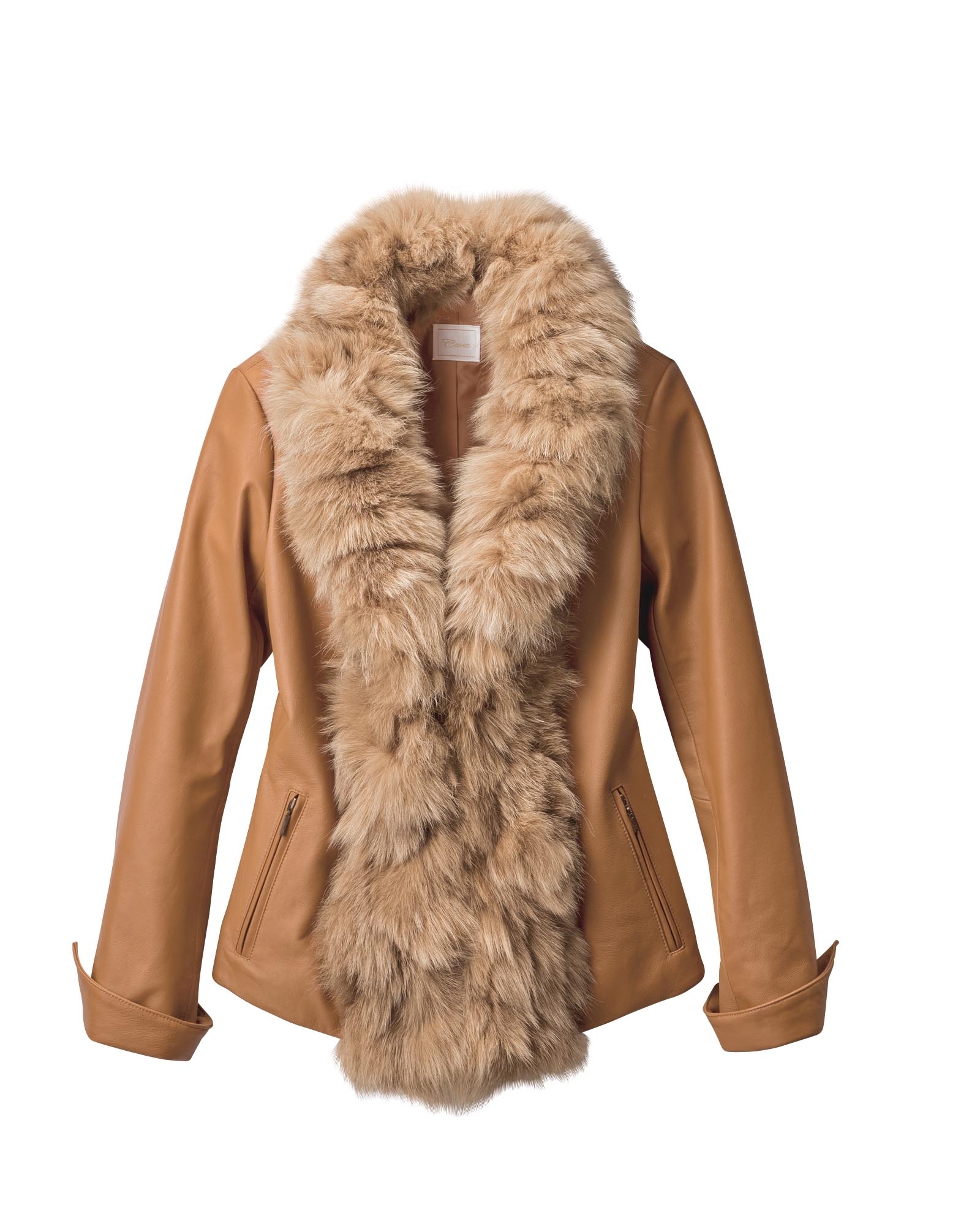 ◆フォックスファー付きラムレザージャケット 税抜価格:49,900円
