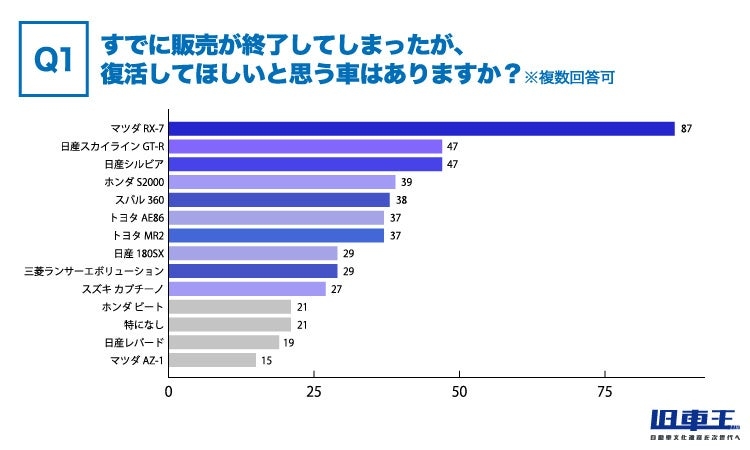 Q1.すでに販売が終了してしまったが、復活してほしいと思う車はありますか?※複数回答可