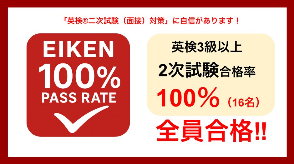 特に、英検3級以上の2次試験は受験者全員が合格(合格率100%、16名)という快挙を達成しました。