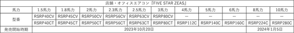 今回モデルチェンジする『FIVE STAR ZEAS』シリーズは、運転条件や負荷の変化に応じて電子膨張弁をさらに細やかに制御することで、1.5馬力から2.5馬力の小容量クラスの省エネ性を業界トップクラスに引き上げました。またこれまで6馬力までだったラインアップに、新たに8馬力と10馬力の大容量クラスを追加します。大容量クラスのラインアップにより、機器の省エネ性の高さによる電気代の削減だけでなく、設置台数の削減やそれに伴う施工費の削減に貢献します。