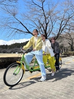 2 人乗り自転車や、新たに登場した 3 人乗り自転車で、お友達、親子、カップルだけでなく、親子三世代でも楽しむことが可能です。