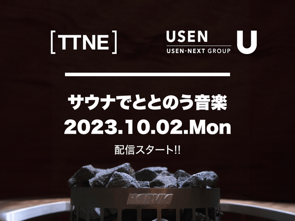 サウナのプロデュースやプロダクト開発などを手がけるTTNE株式会社(本社:東京都港区、代表取締役社長:松尾 大、以下、[TTNE])と株式会社USEN-NEXT HOLDINGS(本社:東京都品川区、代表取締役社長CEO:宇野 康秀)のグループ会社である株式会社USEN(本社:東京都品川区、代表取締役社長:貴舩 靖彦、以下、USEN)は、2023年10月2日(月)予定の番組改編にて、「サウナでととのう※1音楽」をテーマにサウナ施設・サウナ室内をターゲットとしたオリジナルチャンネル3番組を配信開始することをお知らせします。