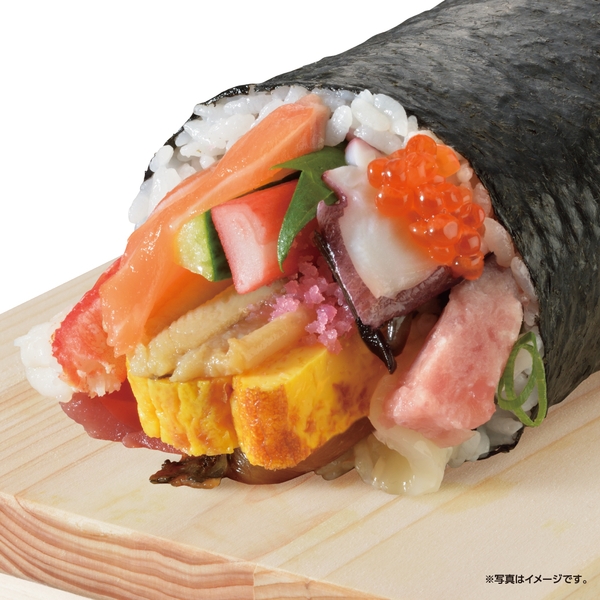北海道産帆立や活〆釜炊き煮穴子、ずわいがに、数の子などバイヤーが厳選した11種類の具材が入った極太太巻。