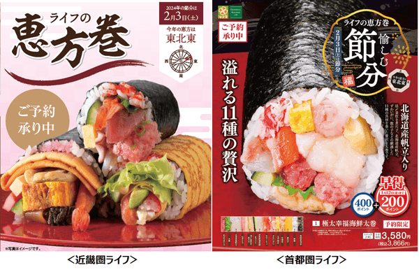 【ライフ】2024年の節分は土曜日!トレンドはちょっとリッチな恵方巻!?予約販売スタート!早期予約特典も実施中!