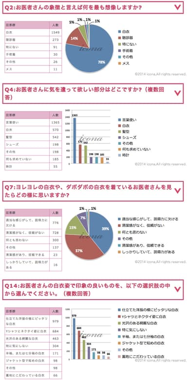 2014年7月18日 15:00株式会社icona(所在地:東京都渋谷区、代表取締役:岡本 英久)は、2014年4月4日~14日に一般の方を対象に実施した「お医者さんの印象」に関する調査結果を発表します。