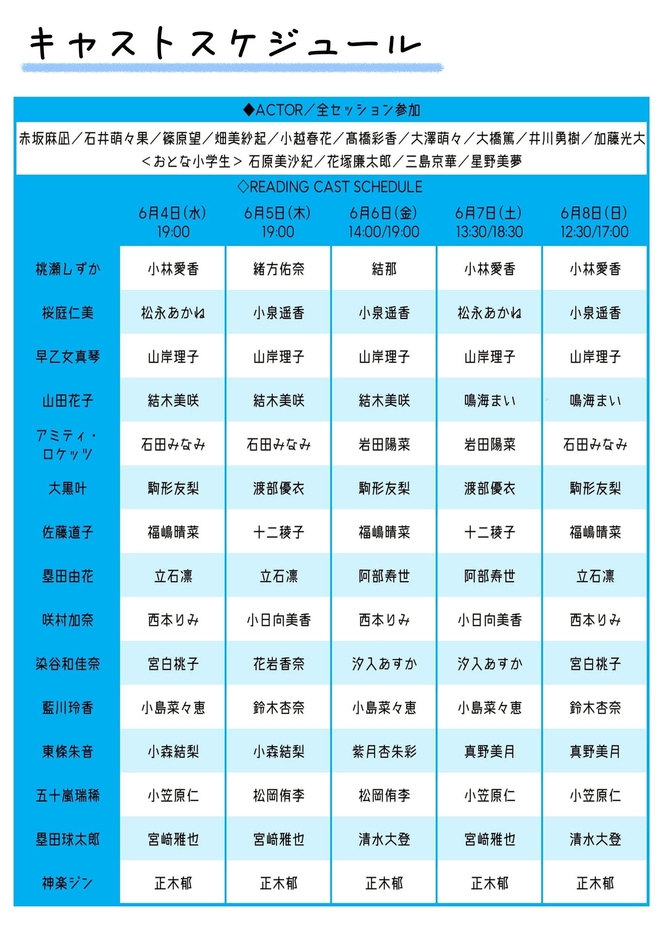 主演は小林愛香、緒方佑奈、結那。準主演は小泉遥香(超ときめき♡宣伝部)、松永あかねがWキャスト制で挑む。また小日向美香、山岸理子、正木郁を含め、他にも多彩なキャストが名を連ねる。