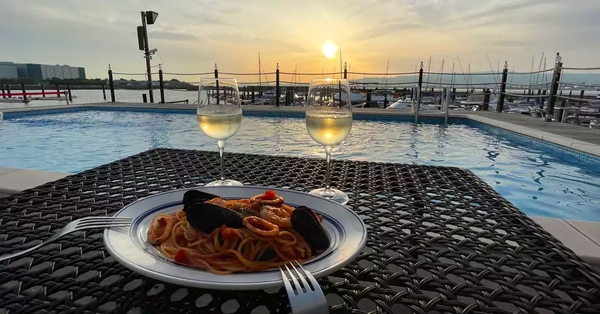 ラグジュアリーな船で景色のいい大阪湾を巡りサンセットを堪能する貸切クルージング。船上で美しい夕焼けを眺めながらシャンパンを片手に乾杯。ゆったりと流れる特別なひと時を過ごしたあとは併設の「カフェ&ダイニング ヘミングウェイ大阪」でライトアップしたマリーナを眺めながらディナーをお楽しみください。