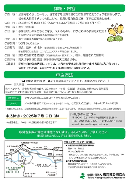 小峰公園では7/19(土)にイベント「小峰公園スタッフと歩く『昆虫の里』夏のチョウをさがそう!」を開催します。