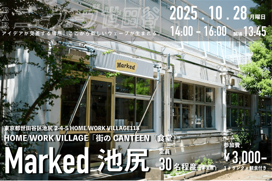 世田谷発の交流会「BARニューウェーブ世田谷」、地域コミュニティと食の循環をテーマに10/28、「HOME WORK VILLAGE」内「Marked池尻」にて開催