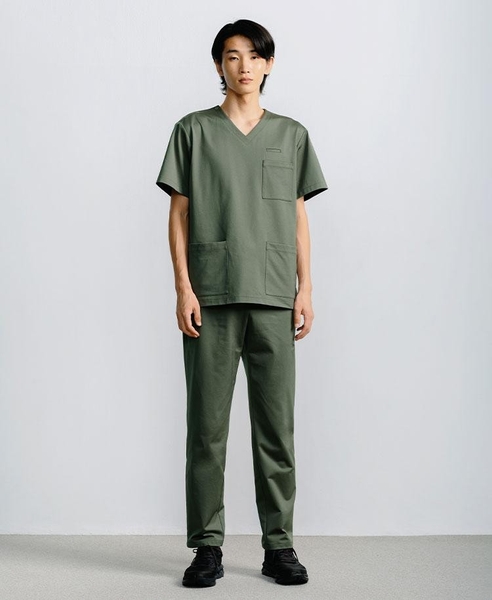 LUXE(リュクス)シリーズは、日常に欠かせないTシャツのような快適さと上品な美しさを備えたスクラブです。従来のスクラブがストレッチ性に欠け、ポリエステルの織物が主流だった時代に、クラシコは「もっと自由で心地よくあるべき」と考え、スクラブに“ニット(編物)”の発想を取り入れました。希少な編み機で高密度に編み込んだ高級感ある日本の技術が産んだニット素材です。